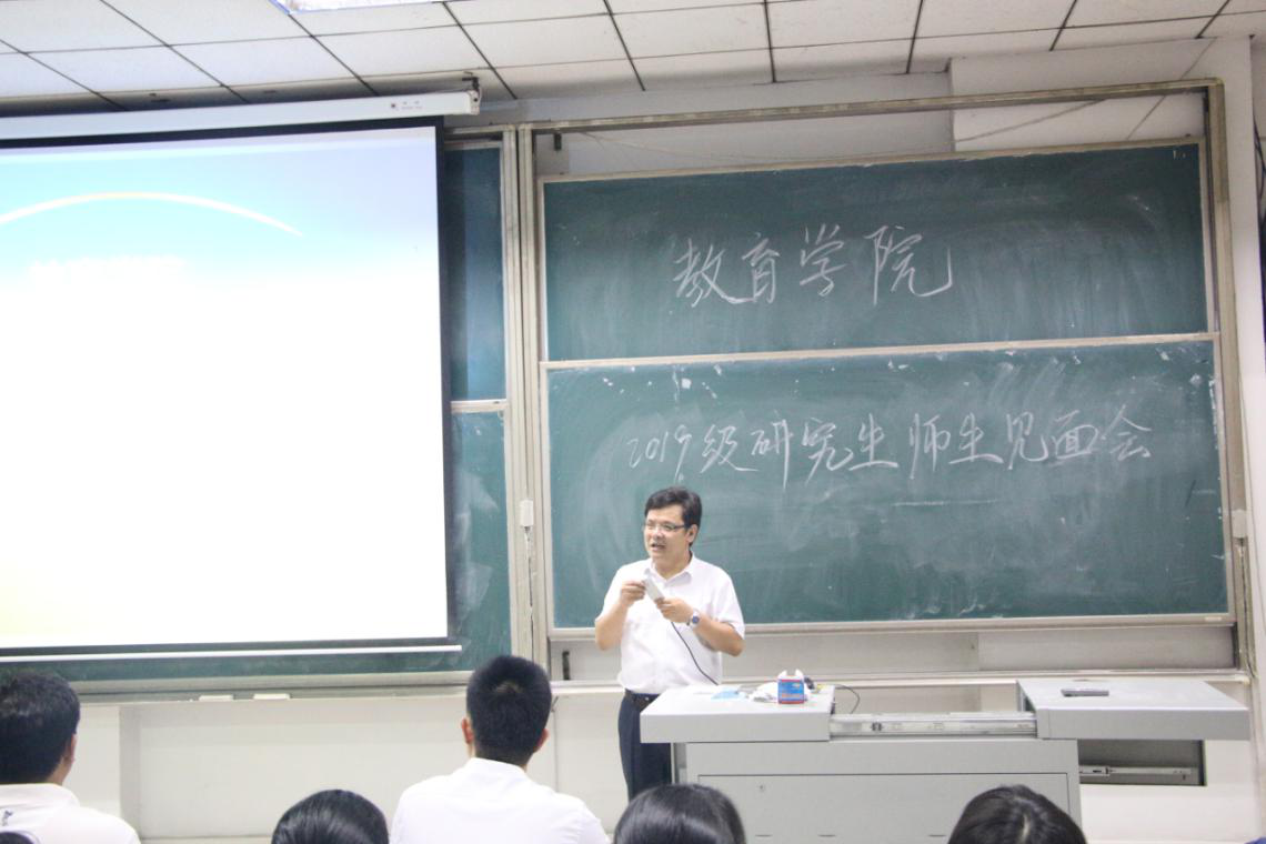 的办学优势、学科建设、主要专业、治学成果、影响力等方面进行详细介绍。并对2019级全体研究生提出四点希望:有清醒的人生规划;有良好的学术素养;有放心的道德品质;有积极的社会情怀。