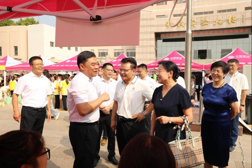 领导班子现场指导迎新工作,详细了解新生报到进程和工作流程,慰问迎新工作人员,鼓励大家以饱满的热情投入迎新工作,把各项工作做细做实,做到新生和家长的心坎上,确保以高质量的服务保障,让每位新生和家长放心满意。