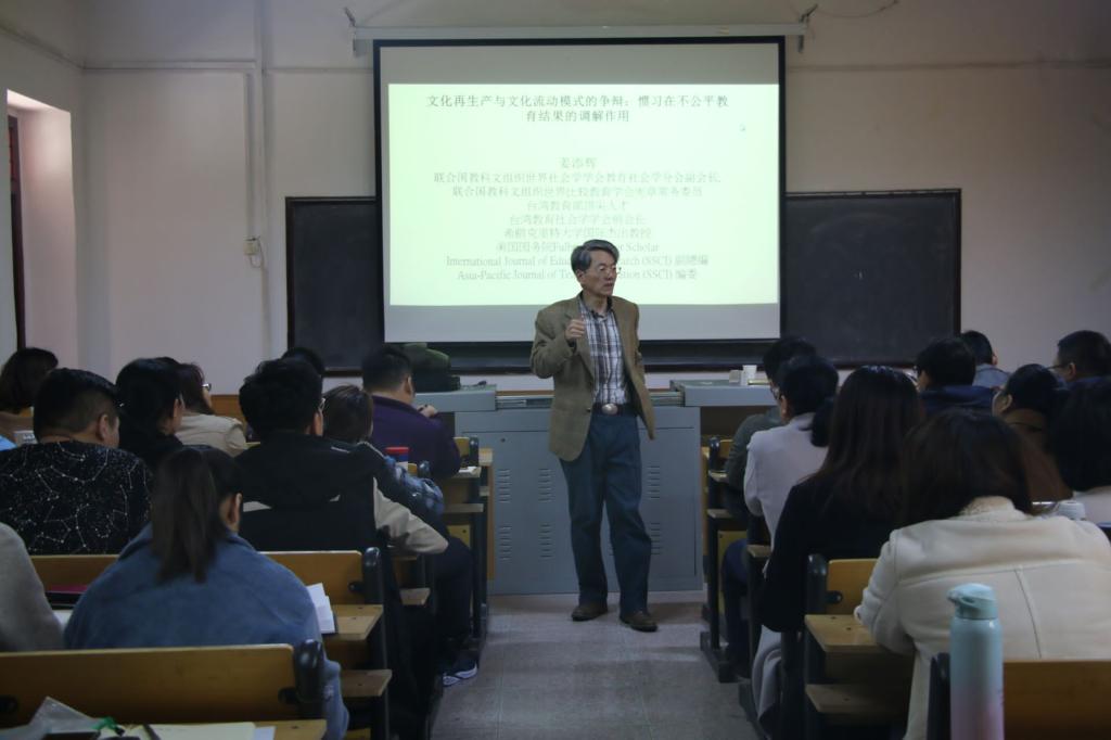 2019年11月12日上午,联合国教科文组织世界社会学学会教育社会学分会副会长、联合国教科文组织世界比较教育学会宪章常务委员姜添辉教授应邀来我院作学术报告,报告由我院副院长徐瑞教授主持。