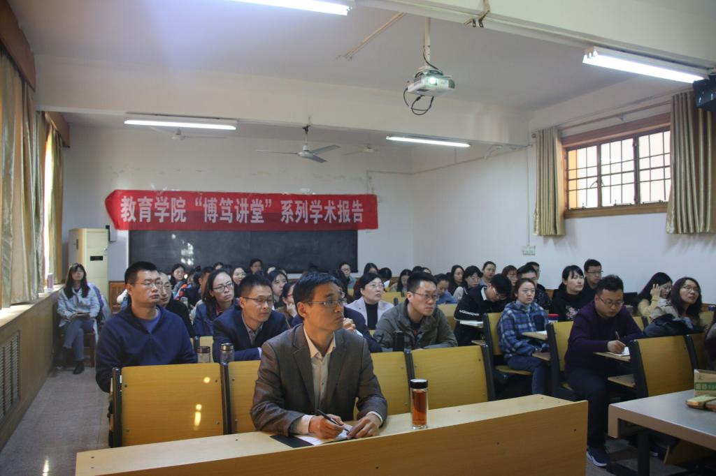 306教室给教育学研究生作了题为“文化再生产与文化流动模式的争辩:惯习在不公平教育结果的调解作用”的报告,姜教授首先从文化再生产和文化流动的起源、发展讲起,指明文化资本是构成惯习形态的基础,从而进一步阐明惯习的调解作用。在提问环节,姜添辉教授对同学们提出的问题进行了认真的解答。