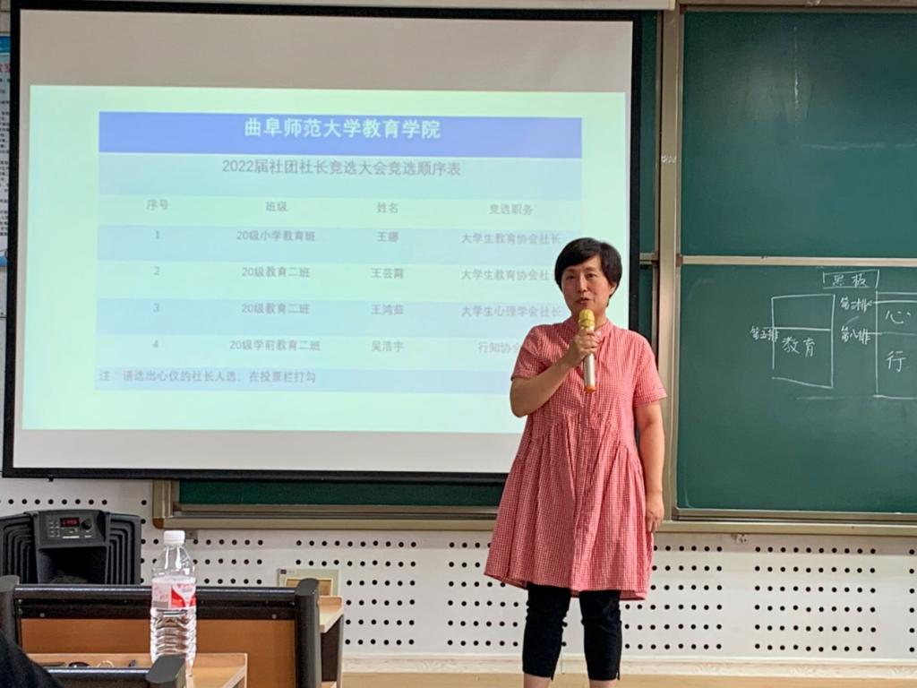 首先,候选人按照顺序依次上台发表演讲,进行简单的自我介绍并分享一年来所做的工作和个人进步的心得。从对社团工作的认知、工作经验以及未来工作计划等方面做了详细的演讲。紧接着,各个社团成员分别进行投票,选出所在社团的新一届社长。经投票表决,王娜当选大学生教育协会社长,王鸿茹当选大学生心理协会社长,吴浩宇当选行知协会社长。最后,周长缨老师为大会做总结,赞扬同学们以高度的使命感和责任感积极参与竞选,为学生社团的发展贡献出自己的力量,为一分快三