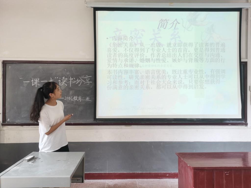 本次分享汇通过让同学们分享“一课一本”推荐的专业书籍,激发了同学们的阅读兴趣,增加了同学们的阅读量,加深了对专业知识的理解,提高了同学们的专业素养,为培养坚守教育初心、牢记教育使命的高素质教师队伍打下坚实基础。