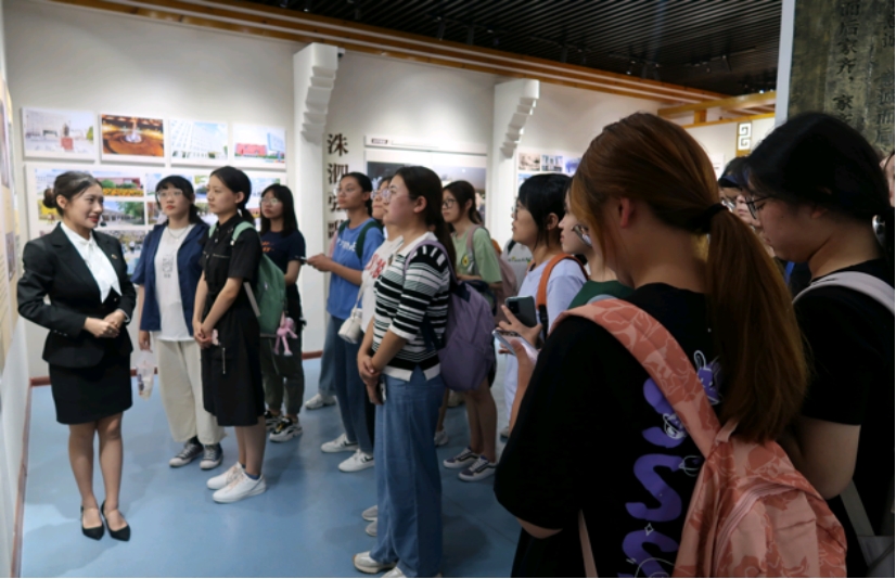 在讲解员的带领下,同学们井然有序地进入校史馆的各个展厅进行参观学习,了解学校的发展历程。校史馆以珍贵的文史资料和照片为主要展示内容,结合声光电技术、实物陈列等多种展示手段,将地域文化与学校特色有机融合,真实生动地展示了学校在办学过程中不同时代的面貌、历史文化和学术气息,展现了学校特色鲜明的办学理念、丰富多彩的校园文化和辉煌灿烂的办学成就。参观过程中,同学们仔细倾听,认真思考,并对感兴趣的人和事追问细节,真切地感受到了学校厚重的历史积淀、丰硕的办学成果和奋发的进取精神。