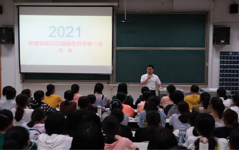 党委副书记孙超老师于综合楼701教室为新生讲授开学第一课,并见证全体新生举行入校承诺仪式。
