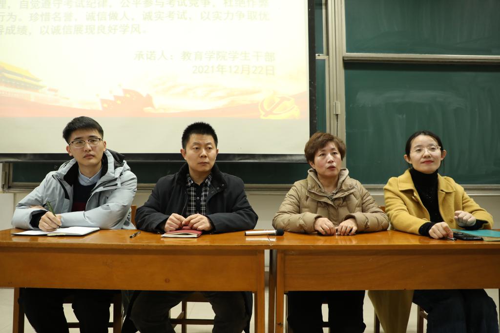 首先,院学生会主席庞霄汉对本学期学生会工作进行总结,并对后续工作作具体安排;随后,周长缨、张东霞老师分别讲话,她们在讲话中指出,学生干部要严以律己,明确自身的义务和责任,积极备考,诚信考试,充分发挥模范带头作用;接着,院学生会秘书处副秘书长王芸霄带领学生会全体成员宣读诚信应考承诺书;最后,孙书记作总结讲话。他对院团委、学生会一学期以来的工作表示肯定,对学团老师和同学们的辛勤付出表示感谢,同时强调,全体学生干部要提高认识,认真复习备考,带头遵守考试纪律,争作诚信守纪的表率,树立好一分快三