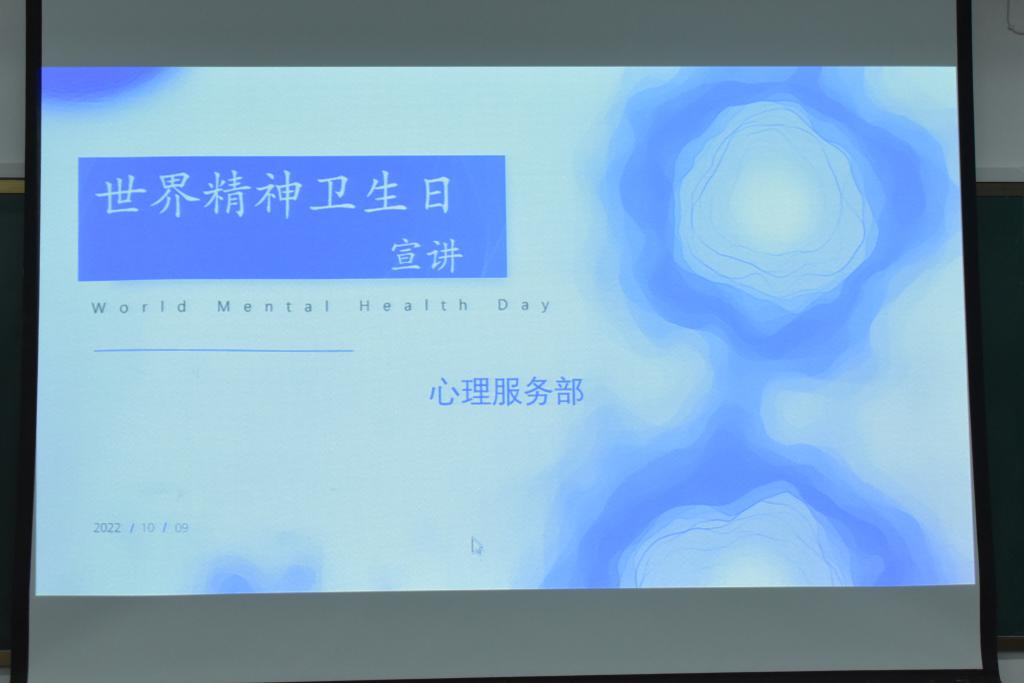 学生会心理服务部积极在2022级各班开展以“营造良好环境,共助心理健康”为主题的世界精神卫生日宣讲活动。