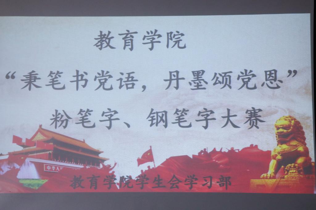 学生会学习部在院楼前举办“秉笔书党语,丹墨颂党恩”粉笔字、钢笔字大赛。一分快三