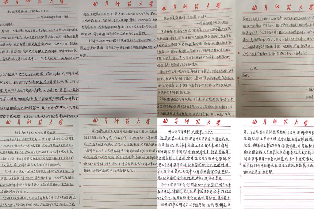 “丹心向党寄情怀,尺牍寄心二十大”。2019级小学教育班、2020级教育一班、2020级小学教育班、2021级教育二班、2022级教育一班和2022级学前教育班团支部,用最真挚的情感和最诚挚的话语写出了给祖国母亲的一封信,表达出新时代青年坚定不移听党话、跟党走的决心,在全面建设社会主义现代化国家新征程上书写青春新篇章。