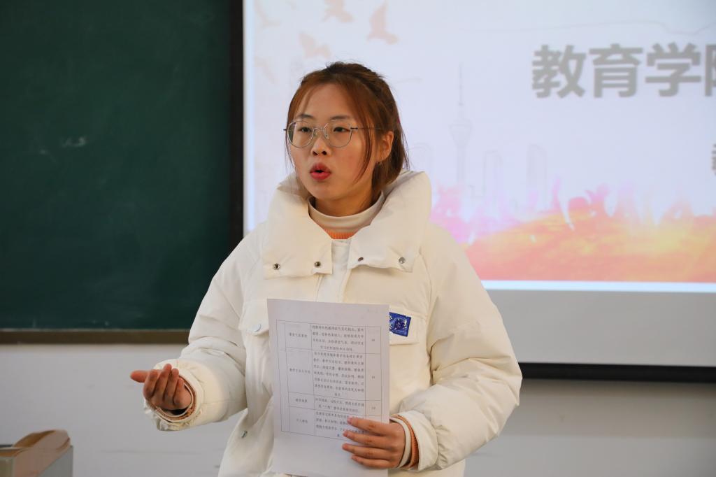 现场评委老师根据选手的课件设计、授课技能和教学内容进行综合点评,指出选手们授课过程中存在的问题,并给予具体的指导性意见。经评委现场评选,2021级教育一班丰晓雪、2021级教育二班孙超和2022级教育二班刘奕娴三位同学脱颖而出,获得晋级学校复赛的机会。