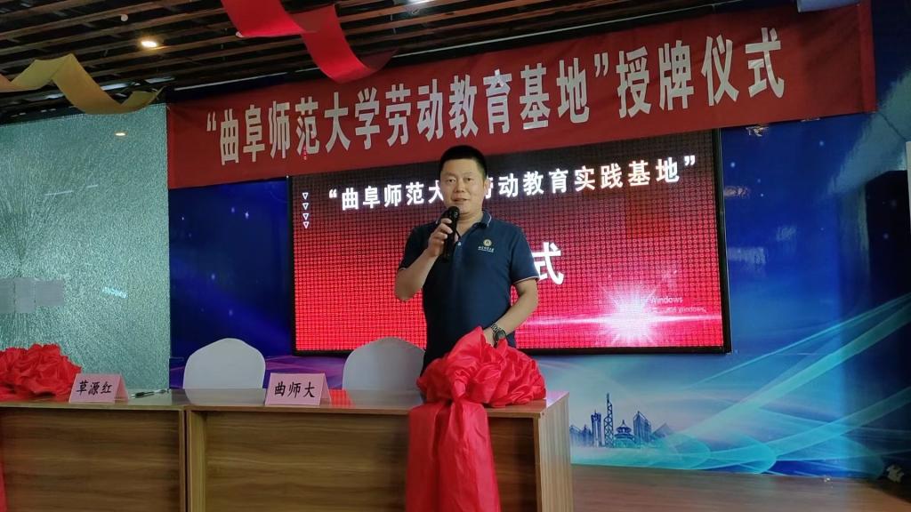 仪式上,孙超书记向连宇董事长授牌并讲话。他首先向以连宇女士为代表的乡村振兴带头人对新时代大学生深入社会和企业一线开展劳动教育实践的大力支持表示感谢,对劳动教育实践基地的建设发展以及学生开展劳动教育实践提出希望和要求。他指出,校企双方要加强合作,深化劳动教育内涵交流,依托实践基地建设促进学生成长成才,助力乡村振兴事业发展;同时希望以曲阜师大一分快三