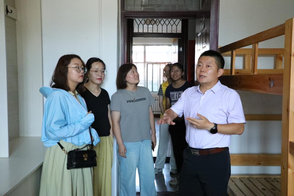 党委副书记孙超、团委书记张东霞、2024级辅导员曹亚楠、商雪敏走进宿舍,现场查看新生宿舍准备情况,慰问参与搬运分发工作的学生志愿者。