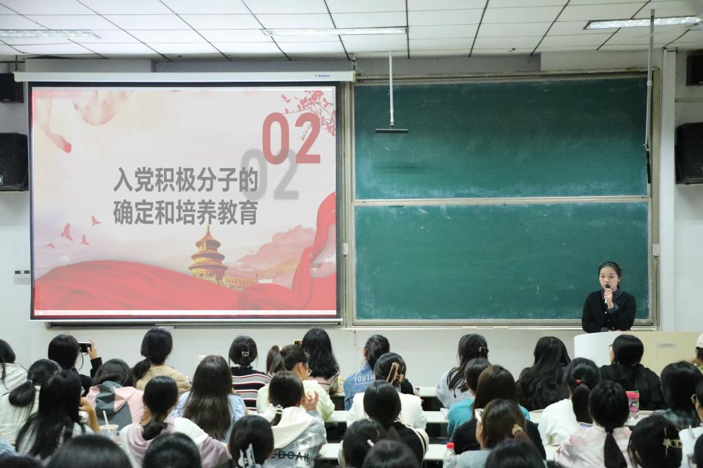 在“红心炽热映党辉,血脉赓续启新程”发展党员知识普及讲座中,崔梓煜从申请入党、入党积极分子的确定和培养教育、发展对象的确定和考察、预备党员的接收以及预备党员的教育考察和转正等五个方面详细讲述了发展党员的工作流程及注意事项。她倡导大家提高思想认识,尽早做好规划,并鼓励新生在大学期间要积极追求进步,勤奋学习,积极表现,争取全方位发展,积极向党组织靠拢。