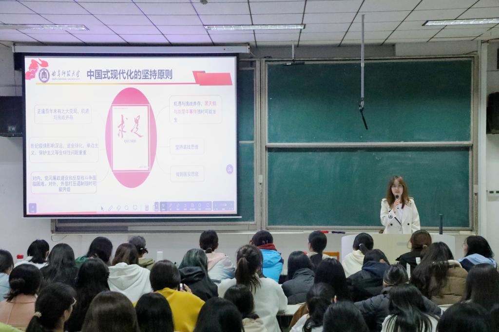 两位主讲人分别从中国式现代化进程和青年精神的角度讲解了党的二十届三中全会的主要内容与改革开放斗争精神的具体表现。她们通过现实案例和深入浅出的讲解,帮助同学们更好地理解党的二十届三中全会精神的实质和核心要义,同时号召同学们要以党的二十届三中全会精神为指导,以开放的心态拥抱世界,走向未来。