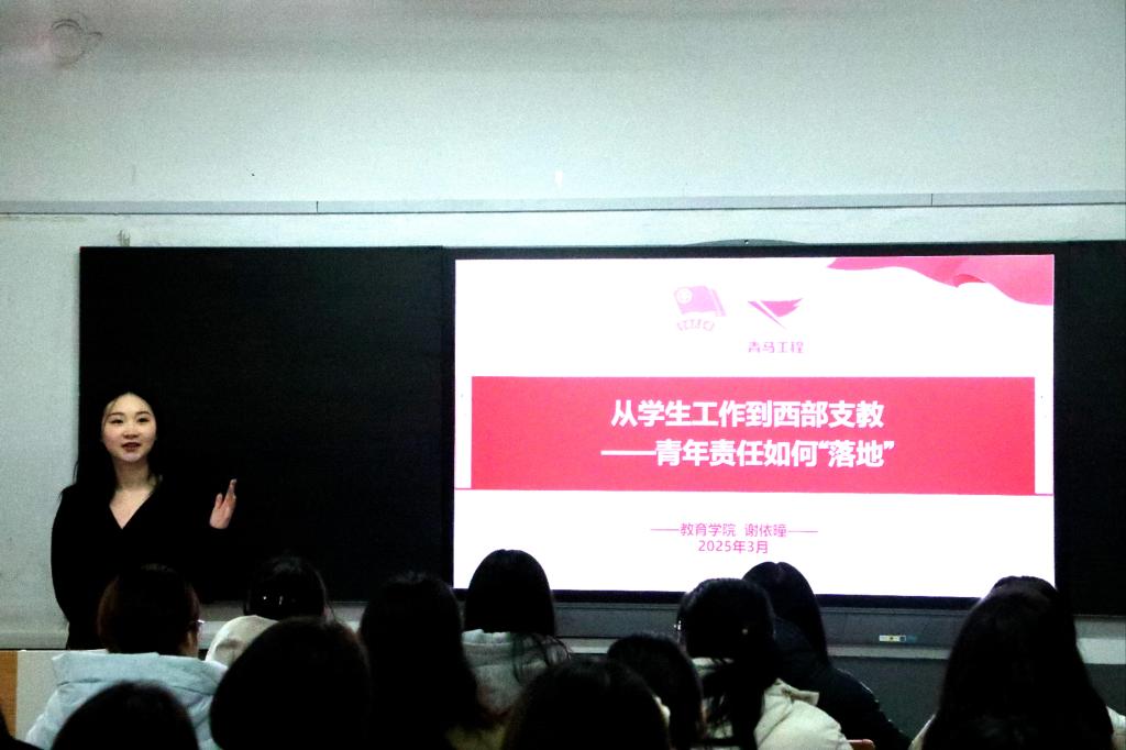 研究生第二党支部书记、曲阜师范大学原学生会主席、曲阜师范大学第25届研究生支教团团长谢依瞳担任主讲。