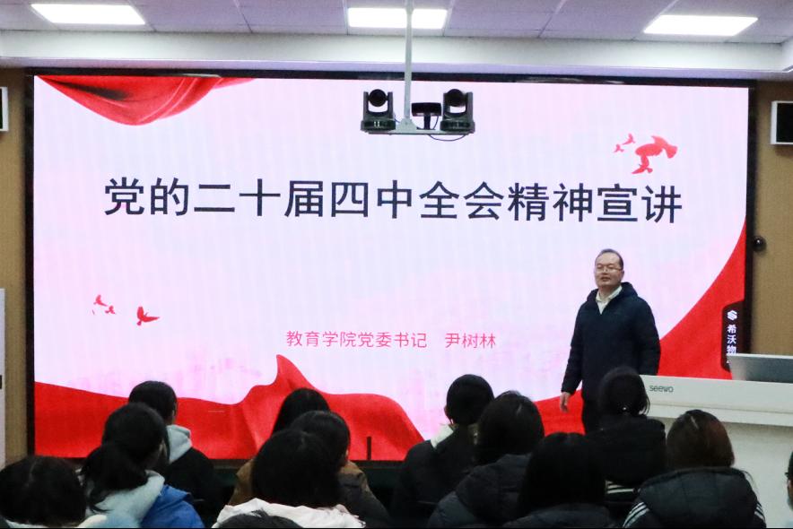 尹树林围绕党的二十届四中全会精神的核心要义、重大部署和实践要求进行了全面解读。他指出,全会作为“十五五”开局关键节点的重要会议,为青年成长成才指明了方向,青马学员作为青年骨干,更要先学一步、学深一层。学员们要牢记坚持党的全面领导的根本要求,将个人理想融入中国式现代化建设大局。同时,要以全会精神为指引,在学业钻研中锤炼过硬本领,在实践锻炼中强化责任担当,在文化传承中厚植家国情怀。他勉励全体学员,要以“挺膺担当”的青春姿态,把全会部署转化为具体行动,既做理想远大的追梦人,也做脚踏实地的实干家,在科技创新、社会服务等领域勇当先锋,努力为强国建设、民族复兴贡献青春力量。