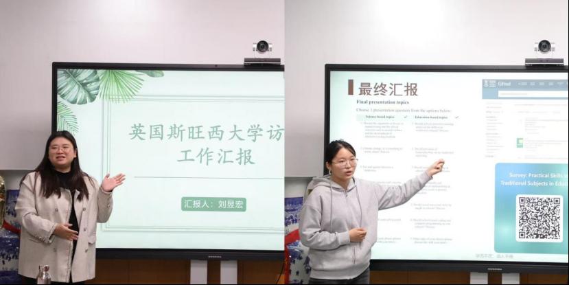国际化发展贡献力量。随后,刘昱宏从课程学习、实践体验、多彩活动、个人收获等方面,对此次海外访学活动进行整体汇报。研究生代表杨燕则围绕学习与生活就语言提升、学术强化、参观实践等方面作访学心得分享。