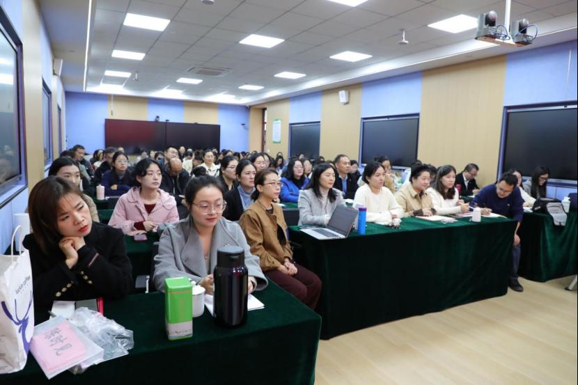 在交流互动环节,袁教授同与会师生就关键能力培育、教育实践创新、跨学科教研等问题进行讨论。