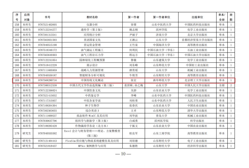 一分快三 讯(通讯员:孙超)日前,山东省教育厅公布第二批山东省普通高等教育一流教材名单,我院张宏博士主编的《中国传统文化概论》入选,曲阜师大共有4种教材入选。
